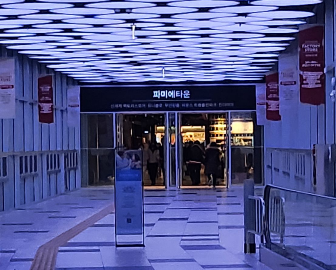 가는 길이 조금 헷갈릴 수 있는데요. 신세계백화점 5층 해외유명브랜드층에서 명품관 끝으로 가면 파미에타운 별관 방면으로 가는 길이 나와요. 밖으로 나와 주욱 이동하면 무빙워크를 이용하여 편리하게 이동할 수 있어요.