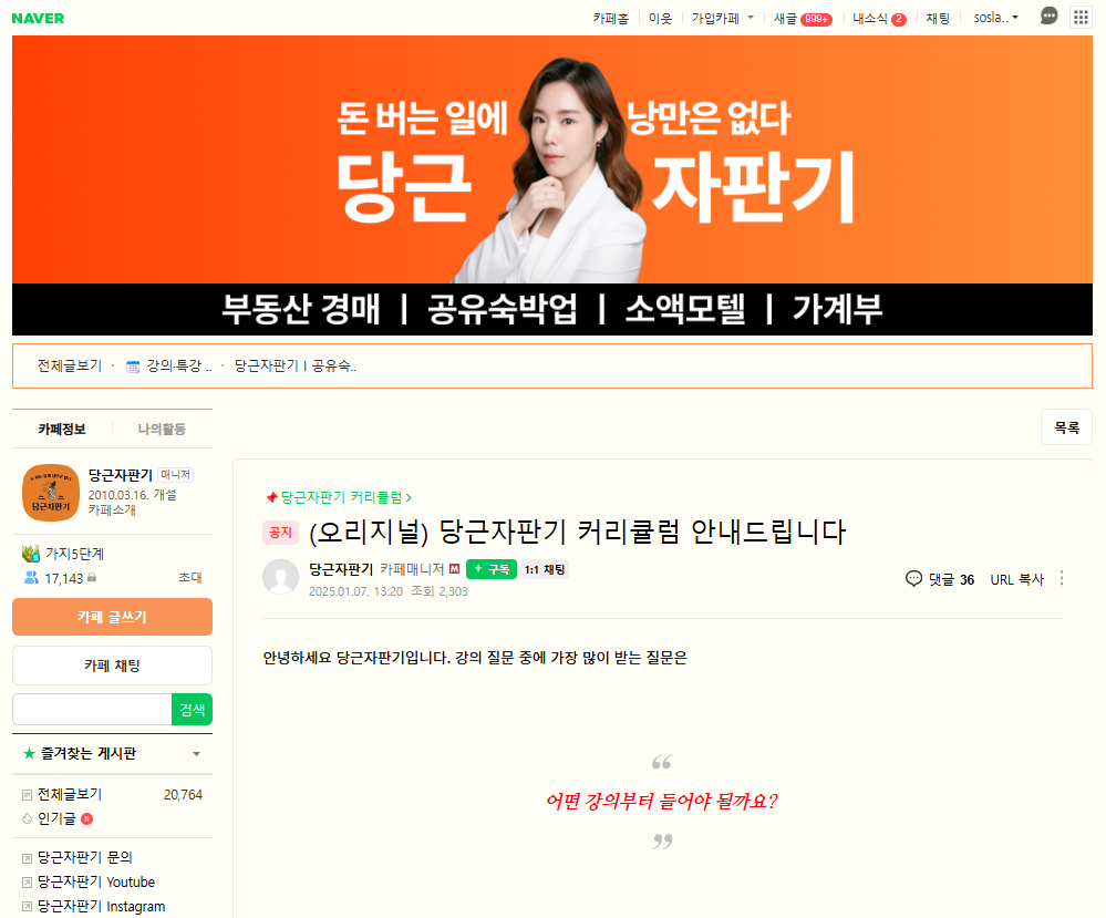 이 글에서는 부동산 경매와 합법에어비앤비 강의로 유명한 당근자판기님의 투자 방식과 강의 후기, 그리고 강의 결제를 고민하는 과정을 솔직하게 이야기해보려고 합니다.