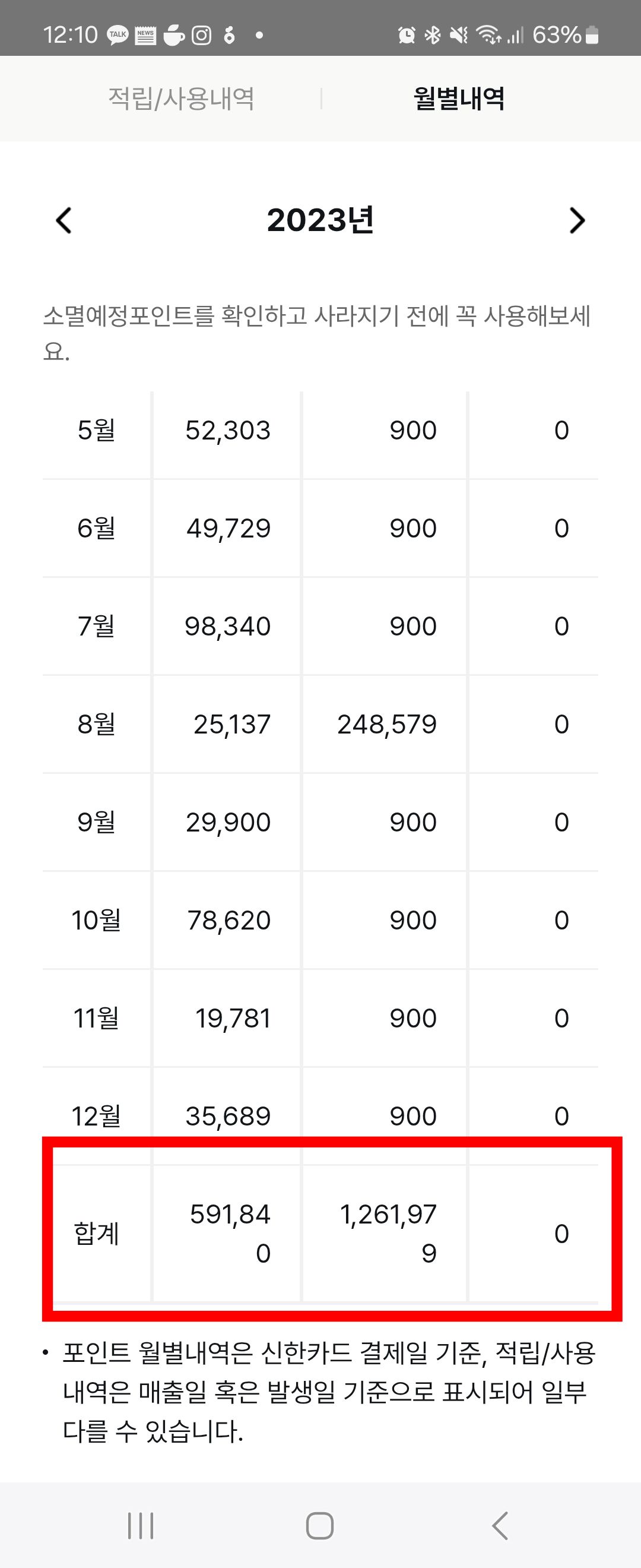 24년과 올해는 사용해야 하는 다른 카드들이 있어서, 카드를 나누어 사용하다 보니, 적립이 23년처럼 많이 되지는 않더라고요. 카드 사용액은 200만 원을 넘기느냐 안 넘기느냐에 따라 차이가 엄청 있어요.